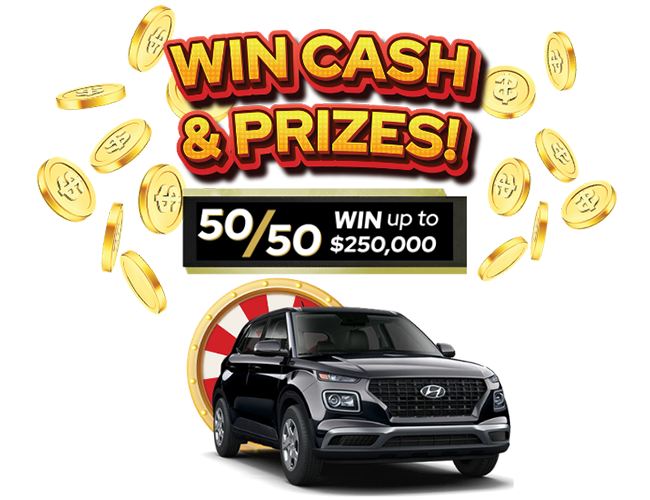 50% of the 50/50 Cash Jackpot