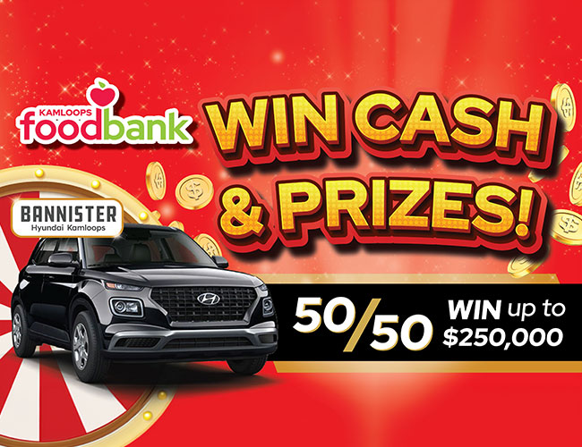 Get ready to win big with our exciting 50/50 Jackpot! Purchase your tickets for a chance to take home half of the total jackpot amount, with the other half supporting the Kamloops Food Bank. Whether you're supporting a great cause or feeling lucky, every ticket you buy brings you closer to winning a substantial cash prize. Don't miss out on your opportunity to win and make a difference!