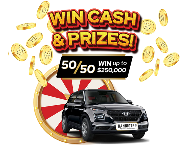 50% of the 50/50 Cash Jackpot